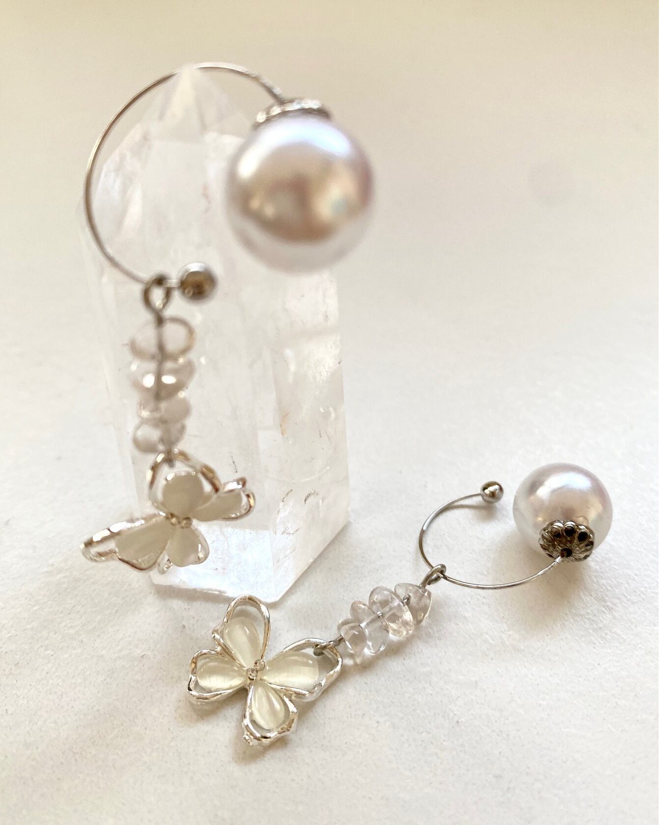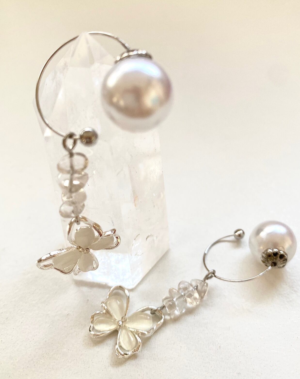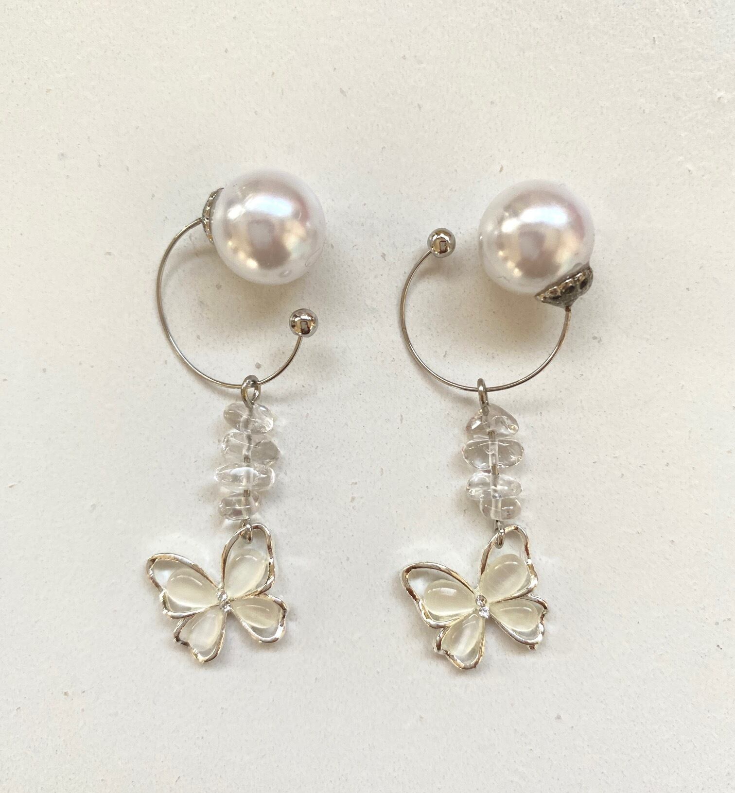 白い蝶と透明クリスタルが組み合わさった、清らかなピュアなかわいさが感じられるデザインです。