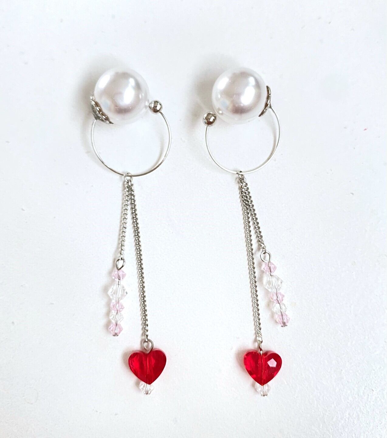 赤いハートと透明のスワロフスキークリスタル。
