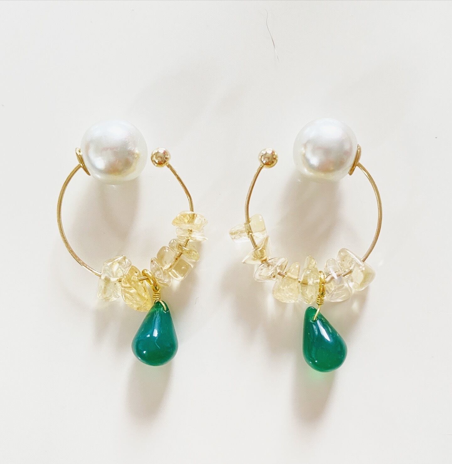 ビューティーカフ/チャーム/天然石 グリーンアゲート&シトリン/ゴールド/20mm